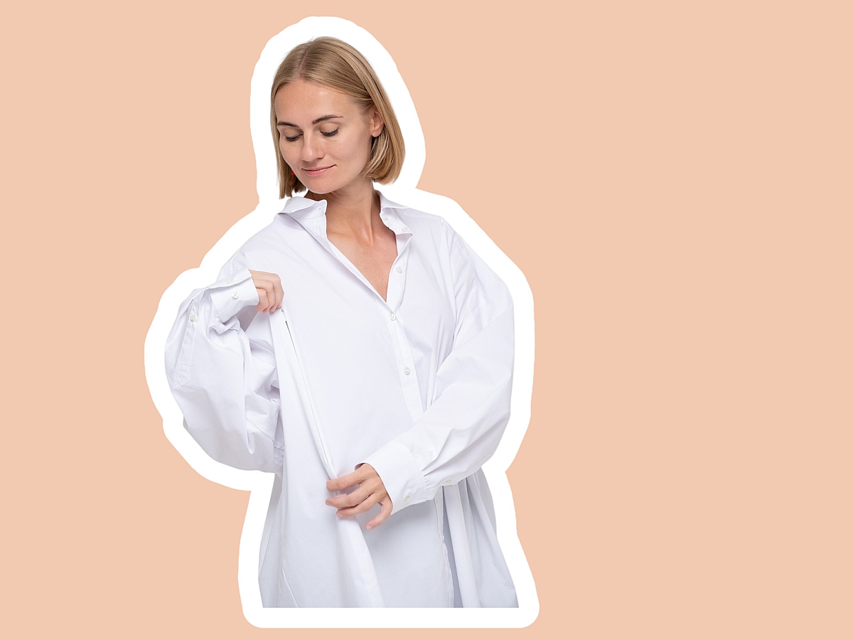 2. Белая рубашка с потайными карманами для кормления