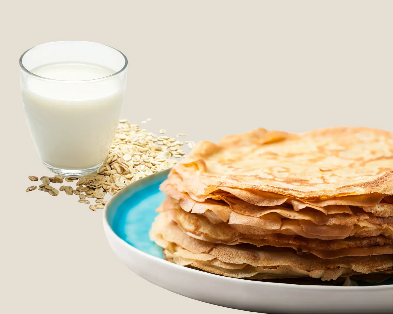 Можно просто взять привычный рецепт блинов и заменить молоко на кокосовое, соевое, овсяное или миндальное в пропорции 1:1.