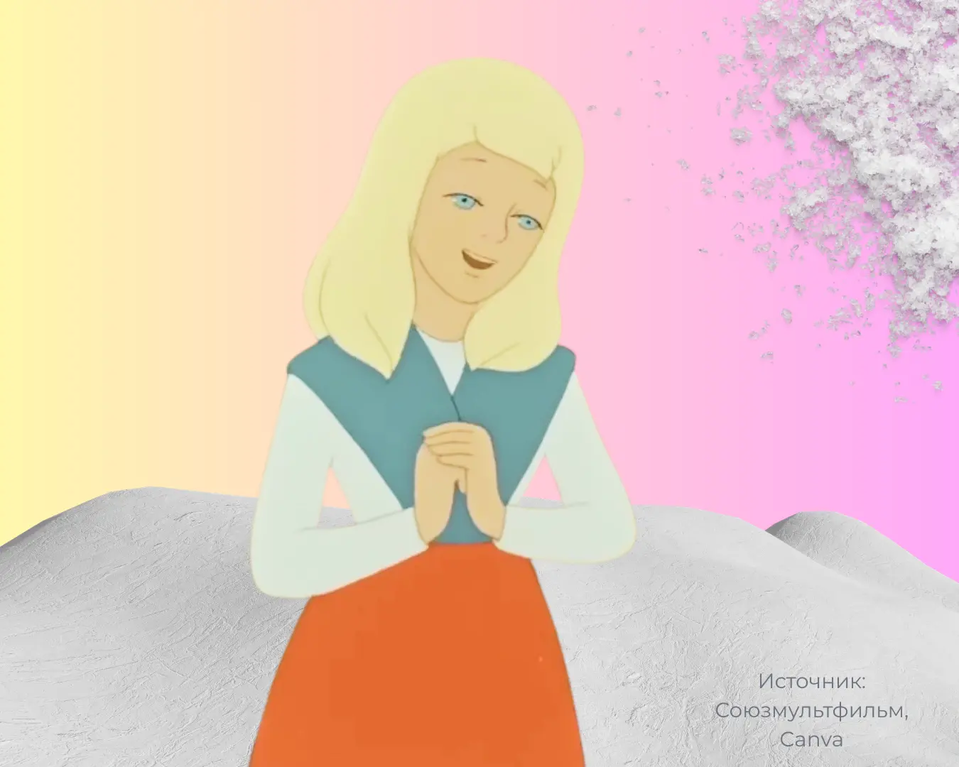 Какие бы трудности ни заставали Герду в дороге, она отважно двигалась вперёд. И даже когда добрый северный олень не смог проводить её в царство Снежной Королевы, девочка пришла туда одна. Потому что, как сказала колдунья-финка, «нет большей силы, чем смелое и преданное сердце».