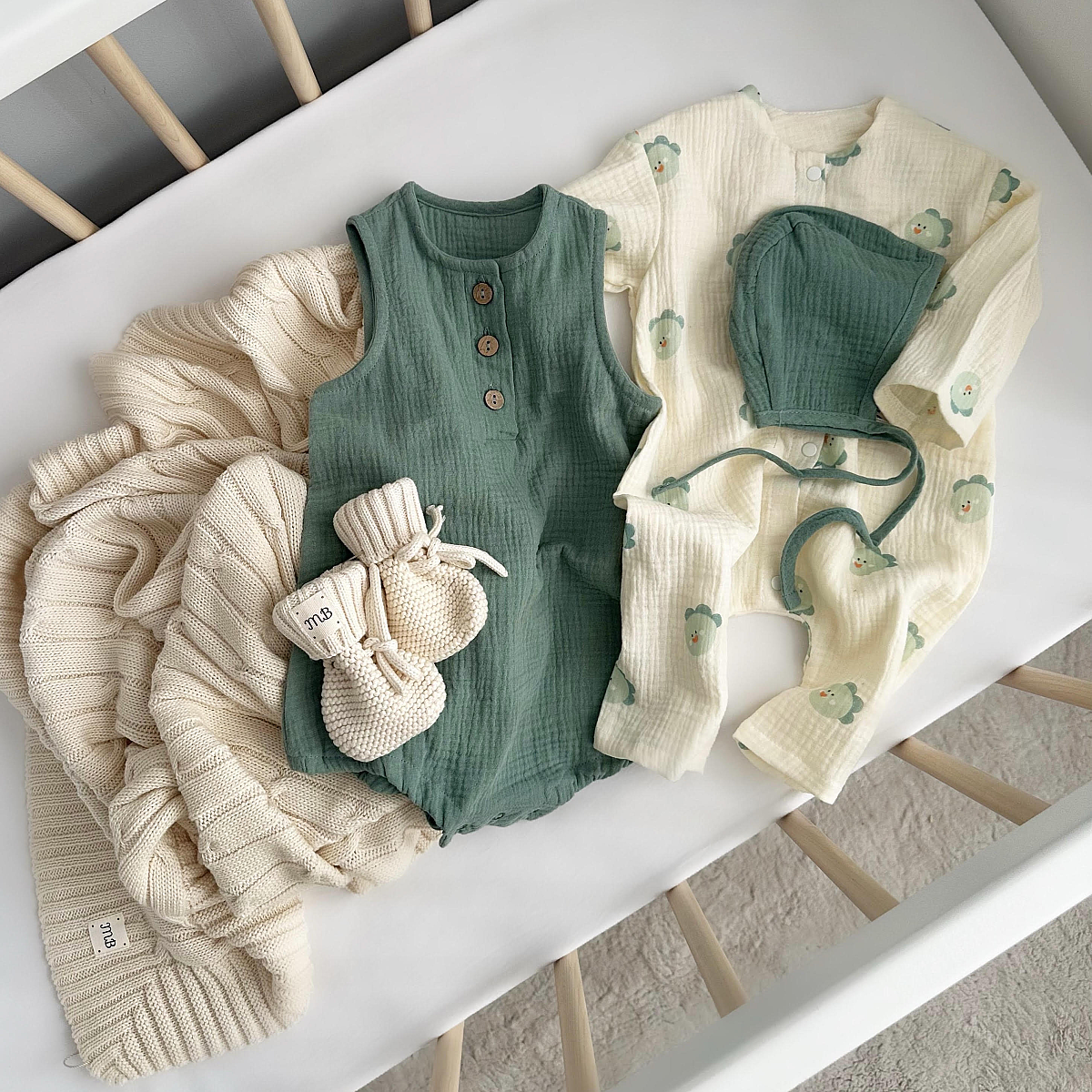 По словам Марины Несмачной, сейчас родители активно закупаются песочниками, тонкими распашными боди, чепчиками и вязаными пледами из хлопка. Очень востребованы любые вещи из муслина – чепчики, предметы одежды, одеяла и особенно пеленки, которые летом можно использовать и в качестве покрывала. Для торжественной выписки мамы выбирают муслиновые конверты. Популярность этого материала в летний период объясняется его тонкостью, легкостью и воздухопроницаемостью. А еще, в отличие от многих других муслин не страдает от многократных стирок, он, напротив, благодаря им становится только мягче, поэтому он любим многими мамами.