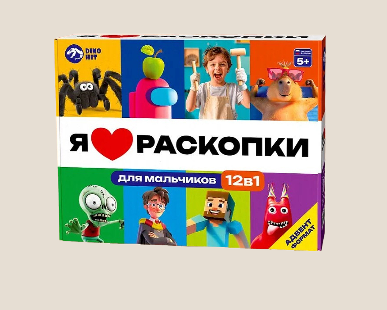 Адвент-календарь раскопки — это полноценное приключение для маленьких исследователей. Детей ждет множество захватывающих сюрпризов на тему археологических находок. Каждый день — новая часть, которую можно аккуратно выкопать, чтобы собрать уникальные экспонаты: кости динозавров, драгоценные камни, древние артефакты. В наборе есть всё для настоящих раскопок — кисточка, лопатка и инструкции, как раскрыть тайны прошлого.