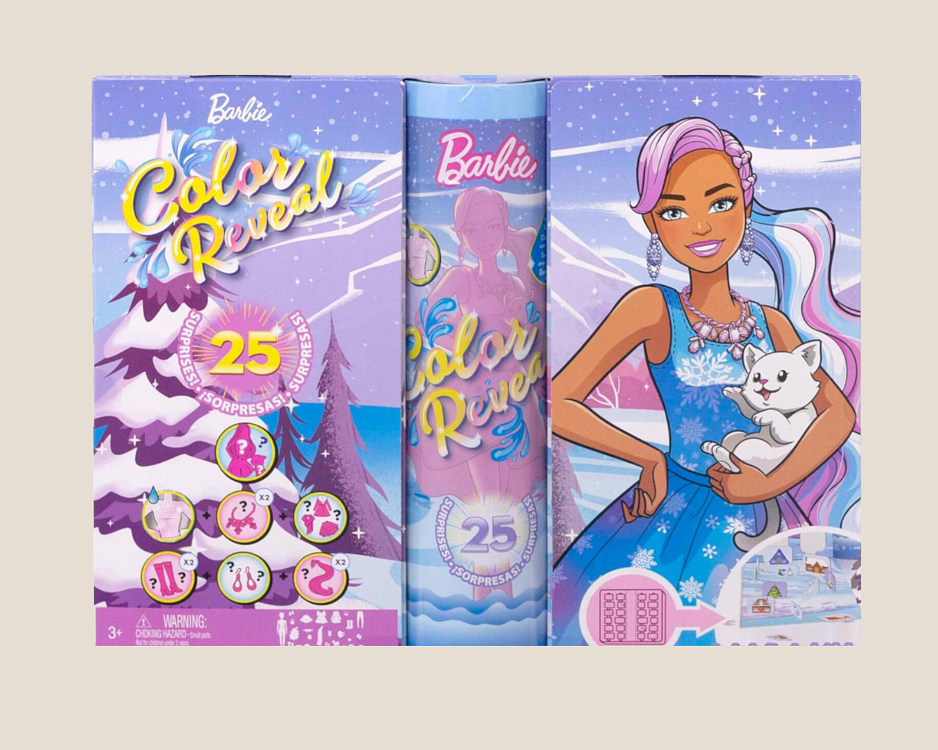 Каждый день — новое открытие: в календаре спрятаны яркие платья, сказочные крылья и украшения. Каждый день Барби примеряет образы, превращается в принцессу или воздушную фею. Даже домашний питомец не остался без наряда. Играть и собирать коллекцию аксессуаров можно весь декабрь, создавая собственную сказку вместе с Barbie.